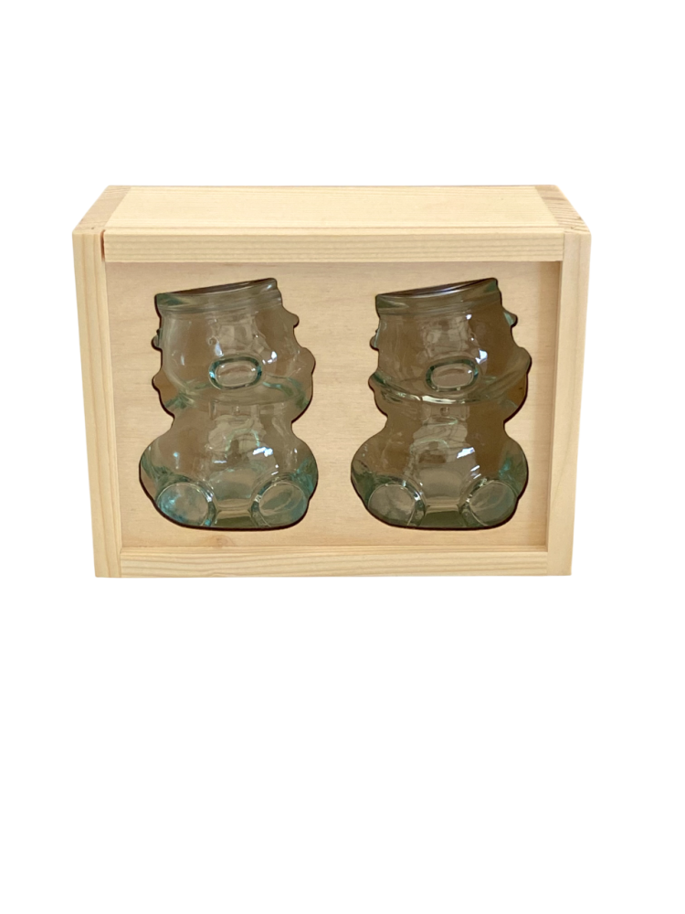- Dekoratív fa csomagolás 2 darab MACKO22 típusú mézes üveg számára