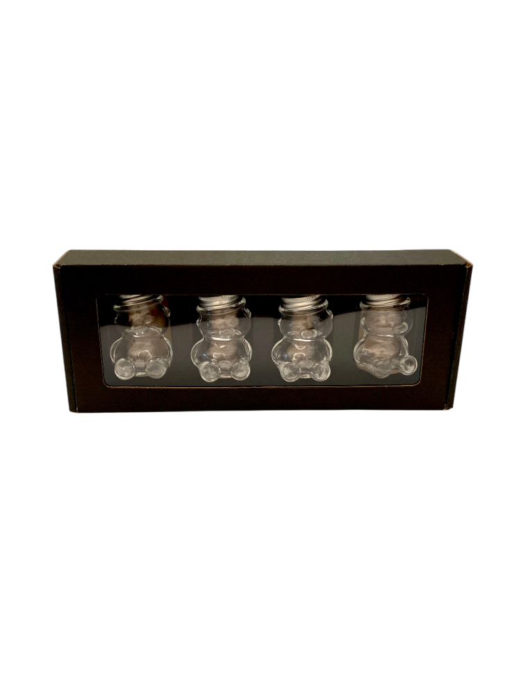 Figyelem: A csomag csak a papírból készült dobozt tartalmazza. Az üvegek (macik) és a méz nem képezik a csomag részét.