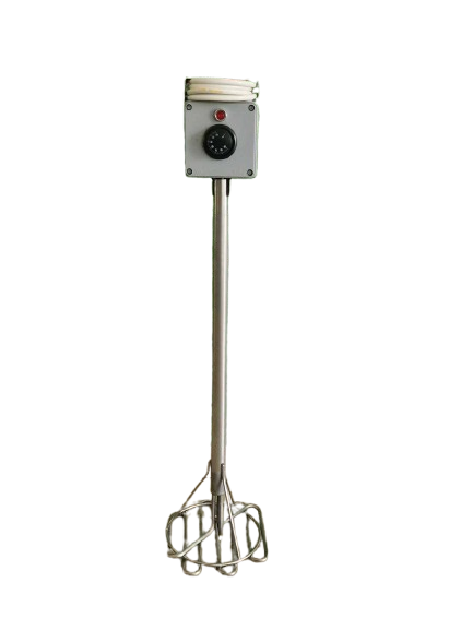Termosztáttal ellátott rudas dekristályosító spirál alkalmas a nehezen folyó – kristályos és erősen viszkózus mézek melegítésére vödrökben és hordókban.