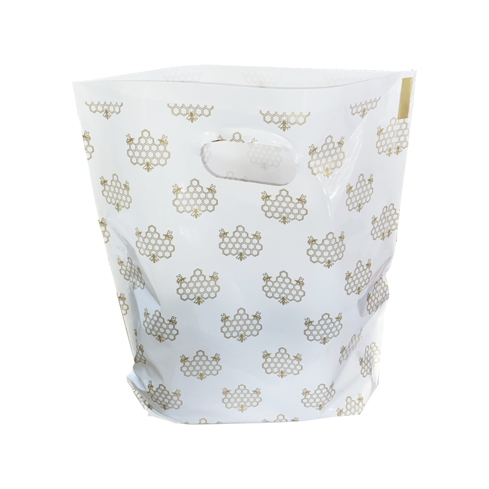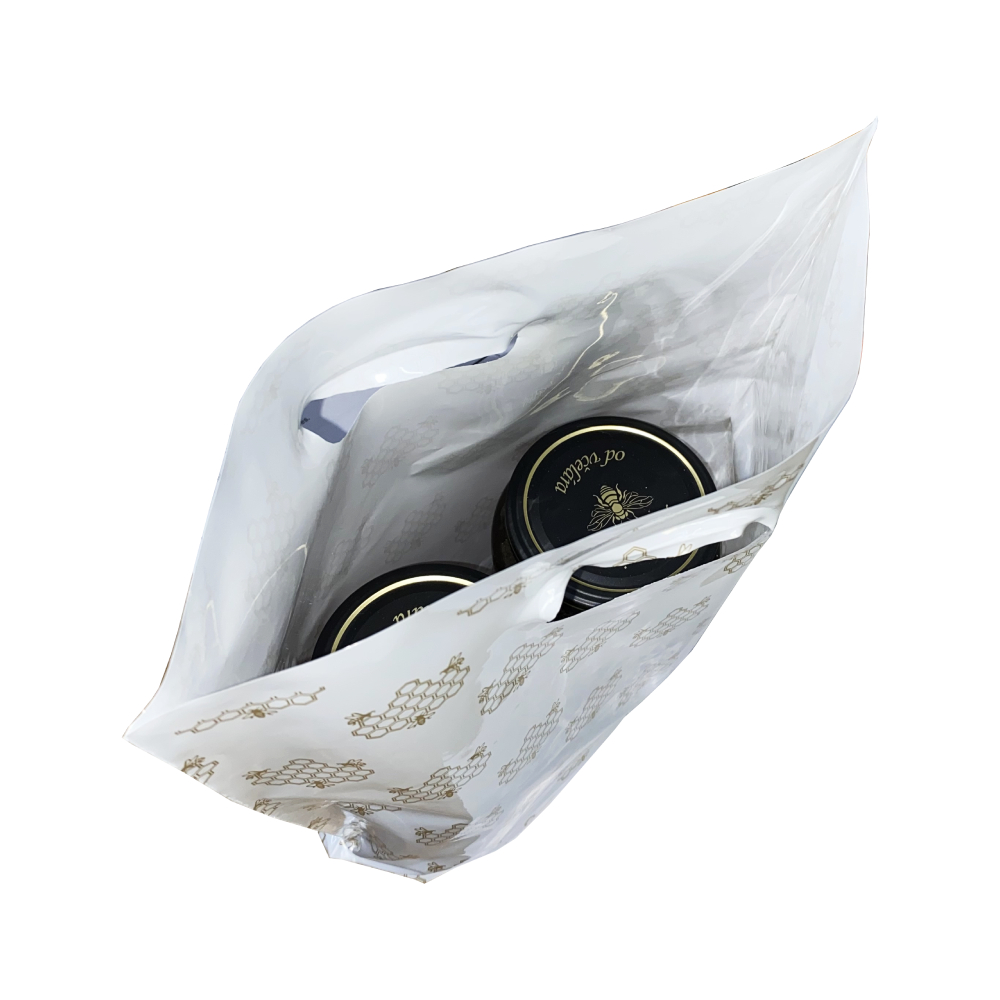 Műanyag mintás táska mézre 2x 1000g mézre – vastag és erős anyagból készült, minőségi feldolgozása jellemzi őket.