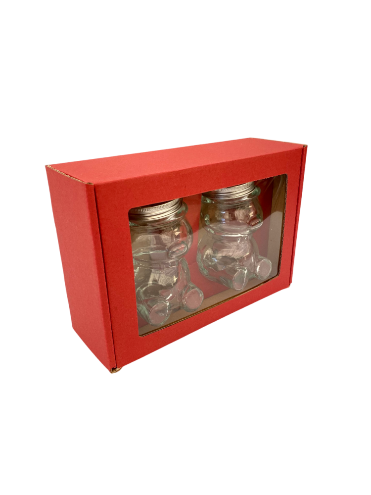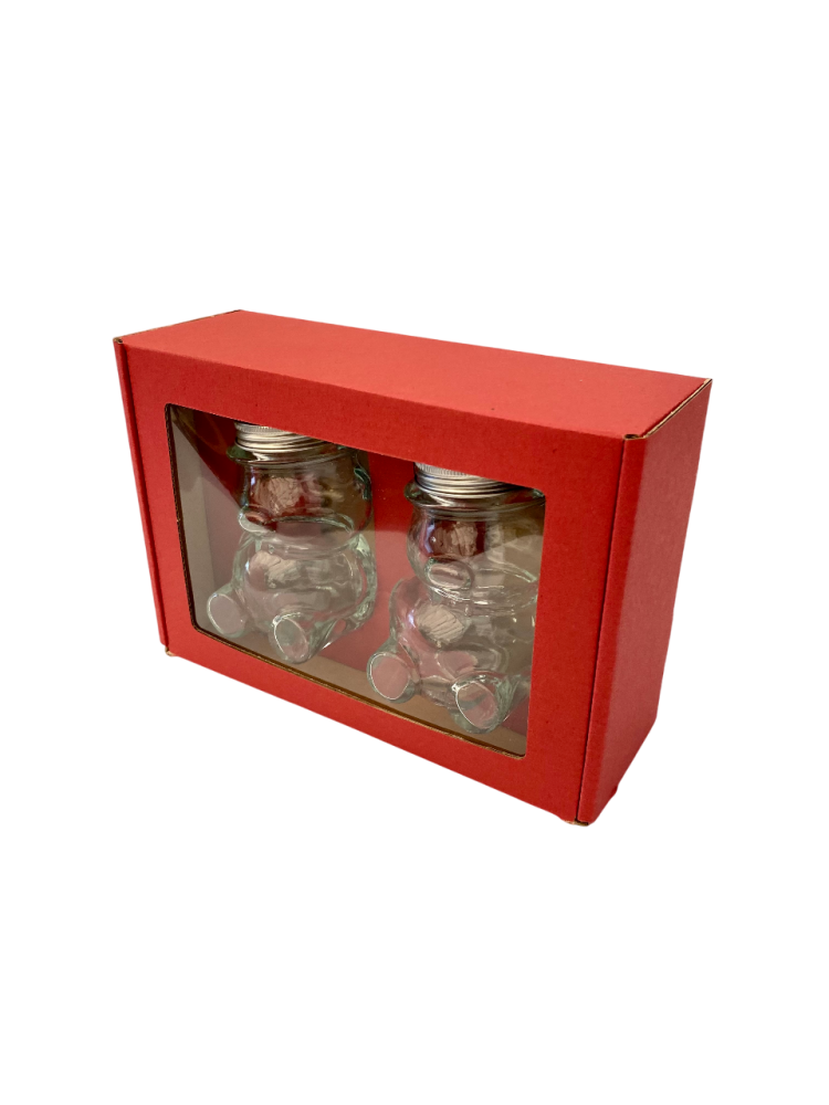 • Piros dekoratív papír csomagolás 2 darab MACKO22 típusú mézes üveg számára