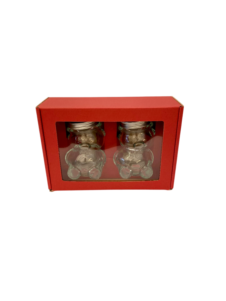 Ez a csomagolás ajándékozási vagy bemutatási célokra készült. 2 darab, 220 g-os, maci formájú mézes üveg ( MACKO5 típus) számára alkalmas.
