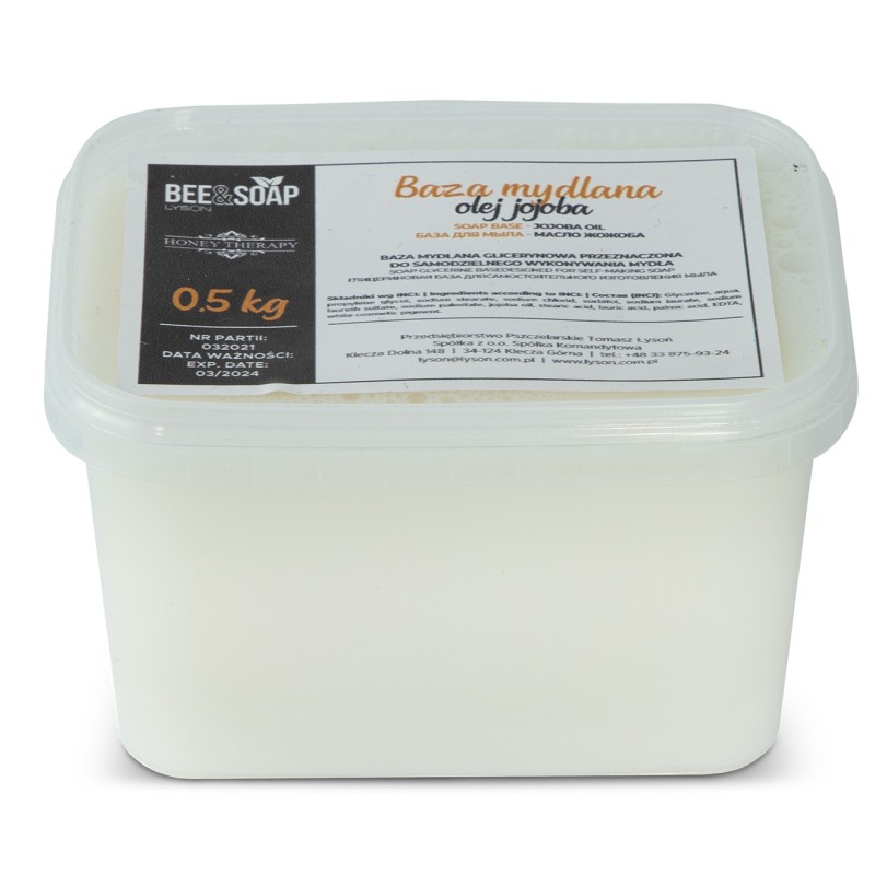 Szappanalap - jojoba olaj 0,5 kg-os csomagolásban, különféle típusú testtisztító kozmetikumok készítésére. Magas glicerin tartalma van – kiválóan habzik. Leginkább illóolajokkal tolerálható. A kívánt sűrűség elérése érdekébe desztillált vízzel, vagy gyógynövénykivonattal keverendő össze.