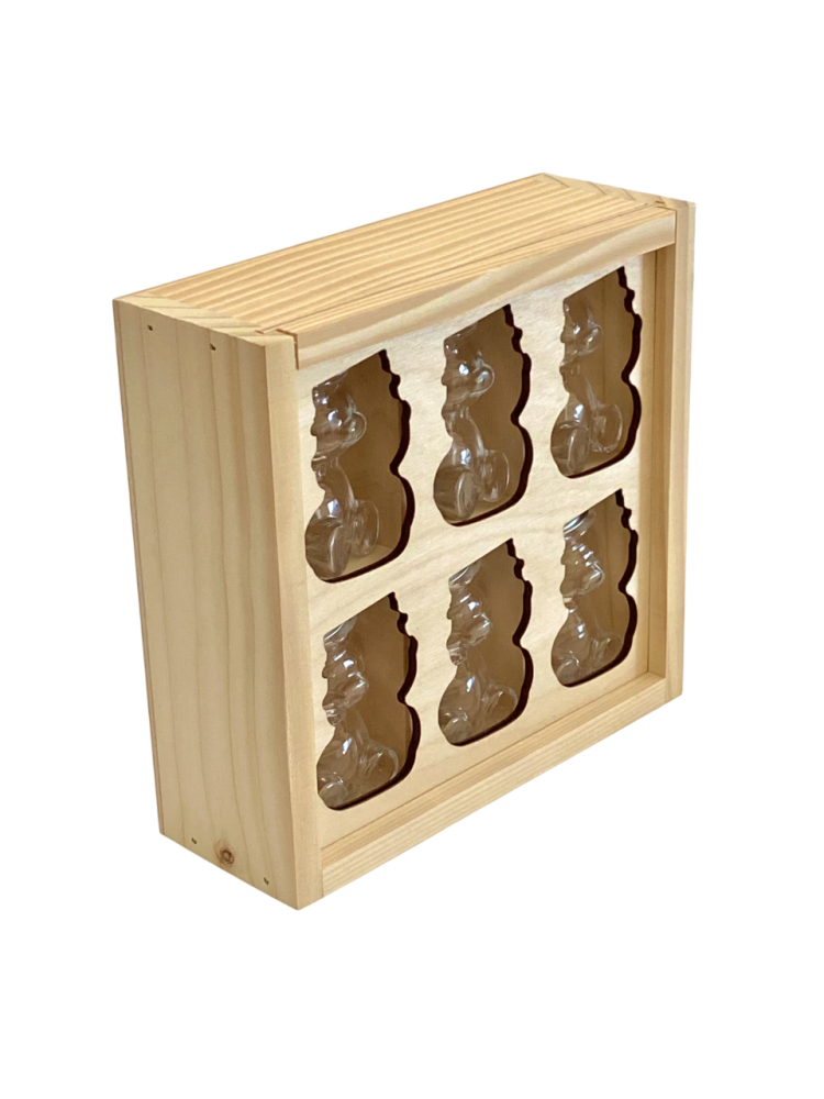 Figyelem: A csomag csak a fa dobozt tartalmazza. Az üvegek (macik) és a méz nem képezik a csomag részét.